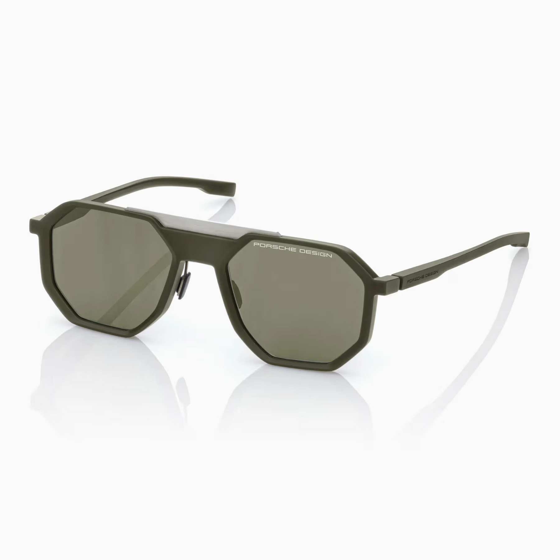 Sculptured design: straight lines and sharp geometries give the P'8981 sunglasses from the Machined series a technical, futuristic look. The extremely light RXP® high-performance polyamide provides exceptional wearing comfort. The edges and bevels of the model also creates an impressive interplay between light and shadow. The progressive design of the sunglasses is rounded off by the embedded aluminum plate in the bridge. Porsche Design lettering adorns the left temple. Available in the colors A (Black) B (Grey Green) C (Dark Blue) and D (Olive) with innovative VISION DRIVE™ lens technology.