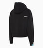 Racing style at its finest. The women's hoodie from the MARTINI RACING® Collection combines sporty elegance with legendary motorsport design. Inspired by the legendary Porsche 936 Spyder, it impresses with carefully considered details and a striking look.The modern boxy shape and the soft, structured material ensure a comfortable fit. Subtle MARTINI RACING® stripe details on the cuffs and embroidery on the hood pick reference the iconic design. A matte, tonal print on the front as well as the Porsche and MARTINI RACING® logo underline the minimalist aesthetic and emphasise the motorsport DNA. A No. 6 badge on the sleeve in the style of the 936 Spyder vehicle lettering underlines the connection to the iconic racing car. Functional zips on the sides add an additional design highlight and make versatile wearing options possible.