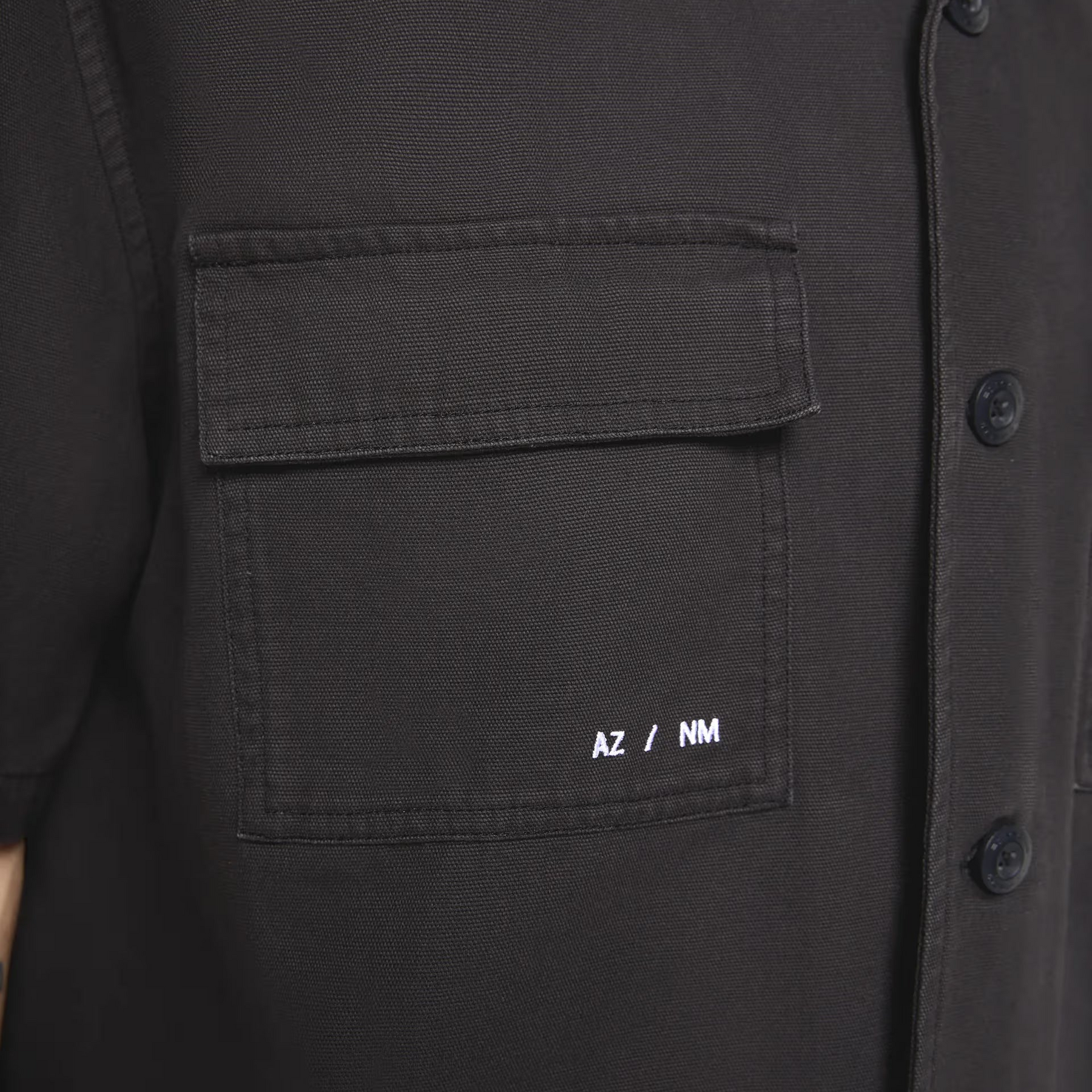 - AZ/NM embroidery on the right pocket hem.