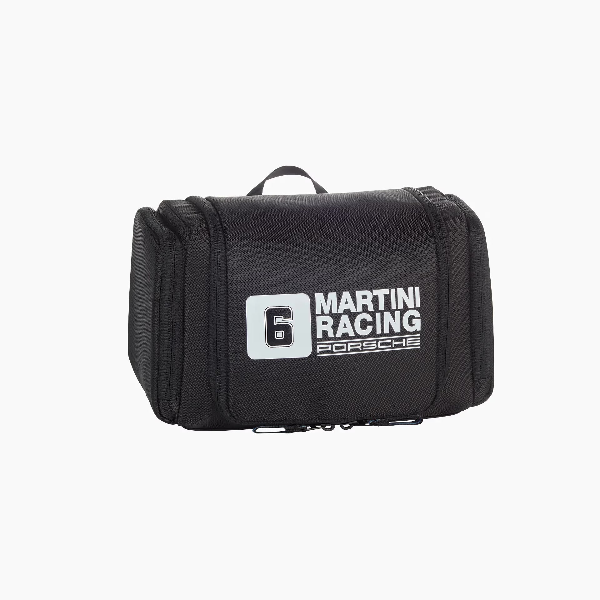 Racing style at its finest: the multi-purpose bag from the MARTINI RACING® Collection is inspired by the sporty design of the Porsche 936 Spyder. The versatile all-rounder is perfect for cables, chargers or personal essentials. The bag made of durable nylon with a water-repellent coating offers reliable protection. A 270° opening with two-way zip allows quick access, while elastic straps and various interior compartments ensure optimal organisation. Special design details include the characteristic MARTINI RACING® stripe pattern on the front and the zip pullers.