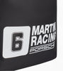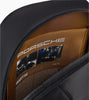 Racing style at its finest. The backpack from the MARTINI RACING® Collection is inspired by the sporty design of the Porsche 936 Spyder. Its carefully considered layout offers optimal storage space for everyday use and travel. The padded notebook compartment protects laptops up to 13 inches, and additional side pockets with expansion options, a front zip pocket, and an integrated business organizer keep the interior well-organized. Padded, length-adjustable shoulder straps made from durable seat belt straps and a reinforced back with trolley link ensure maximum carrying comfort. The durable base protects the contents from external influences. Special design details include the Porsche and MARTINI RACING® logo, along with the characteristic stripe pattern on the front.