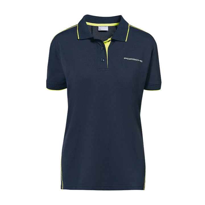Functional polo shirt made of comfortably lightweight mesh material. Fast drying and breathable. 100 % polyester. In purple with acid green.